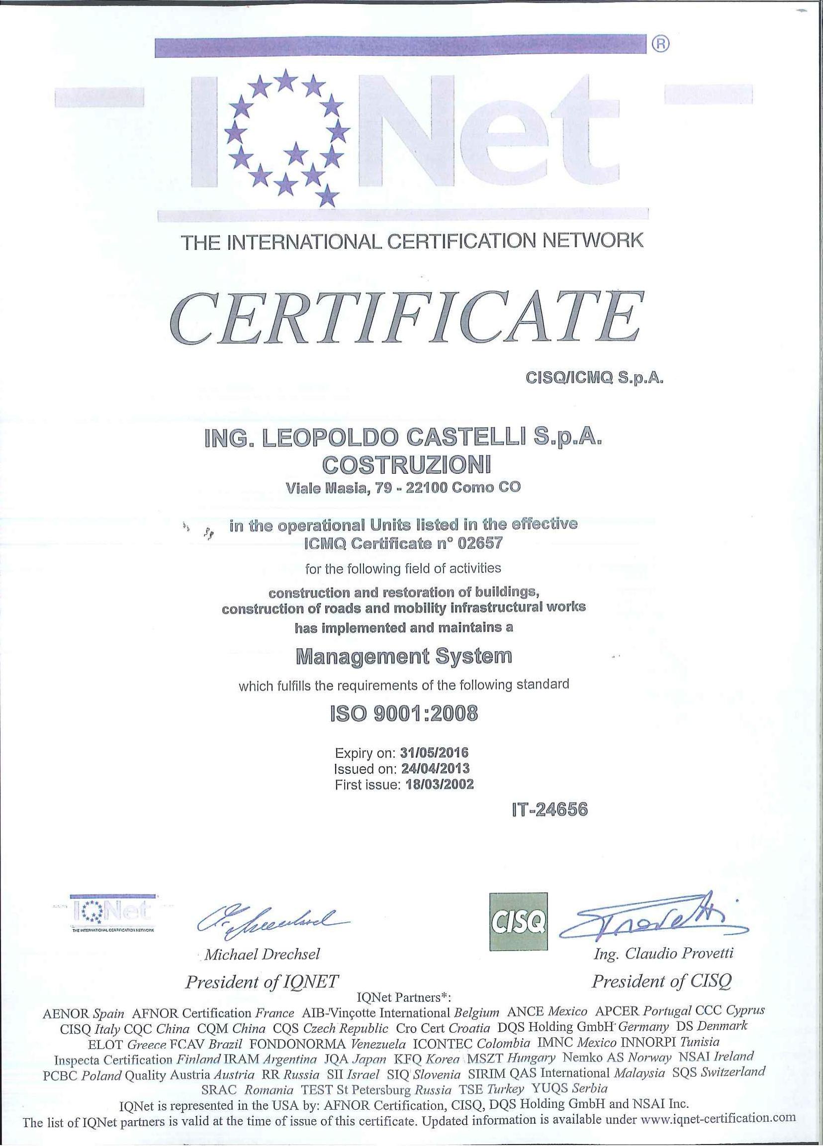 L’Azienda dispone di attestazioni SOA in molteplici categorie di lavoro ed alcune per importo illimitato, e di certificazioni del sistema di qualità UNI ISO 9001.